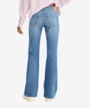 $64Trendy women’s blue jeans featuring a flattering fit with stylish front pocket details.