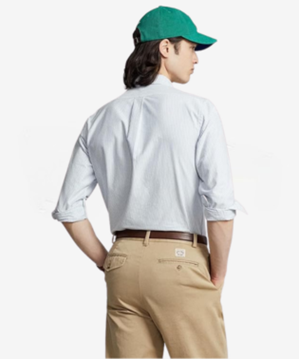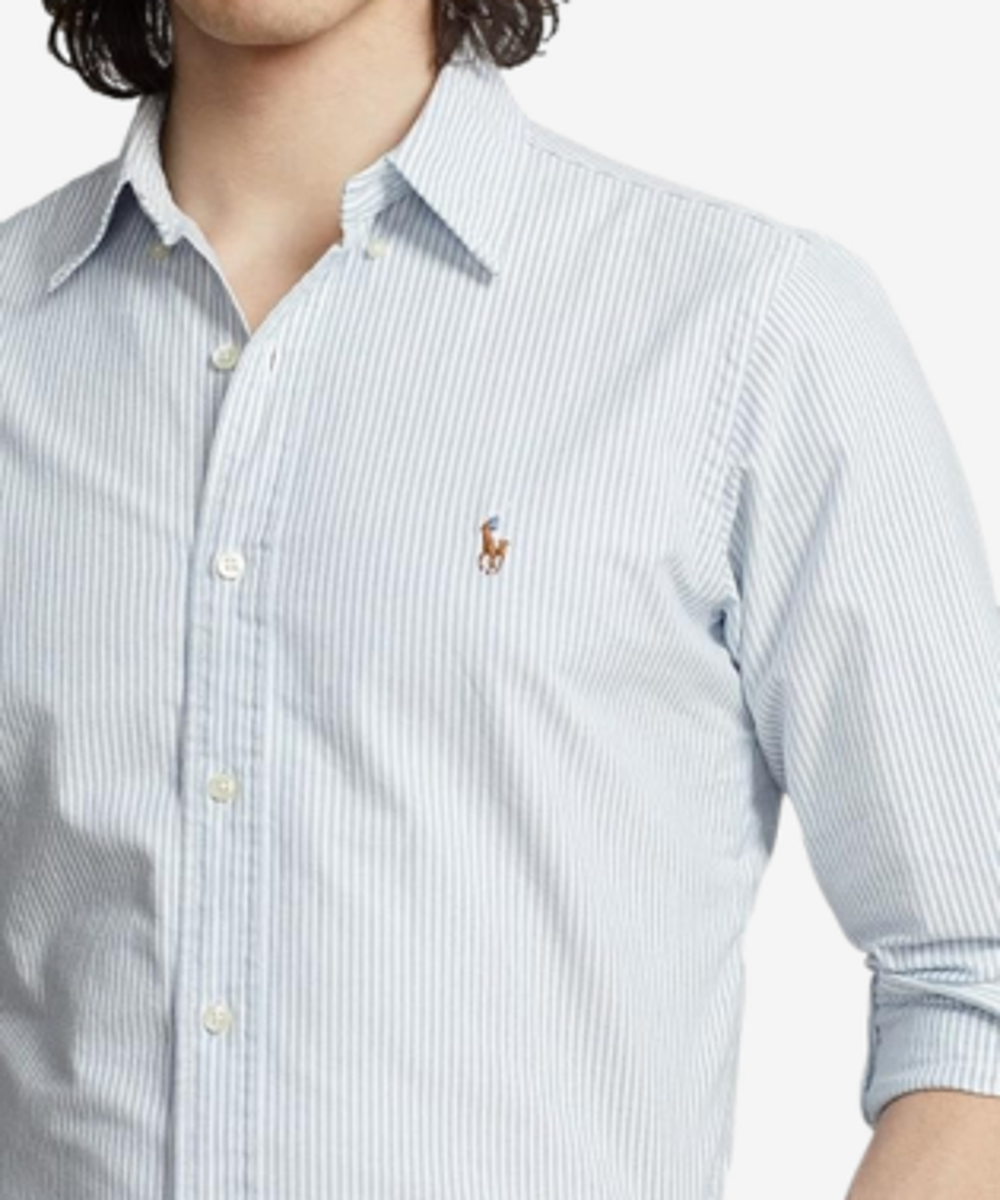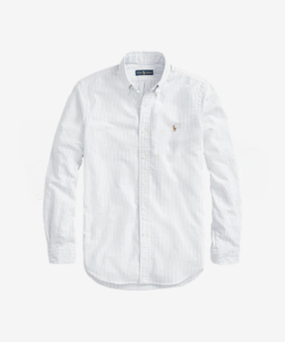 - Button-down point collar. Buttoned placket. Long sleeves with buttoned barrel cuffs.
