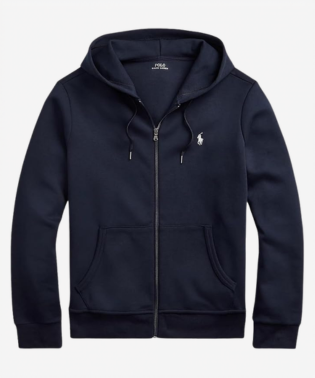 - Drawstring hood. Full-zip front with a signature zipper pull.