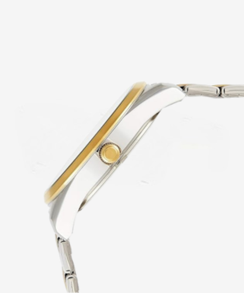 Premium men’s watch presented in an elegant branded box, combining modern design with a sophisticated two-tone finish for a luxurious appeal.