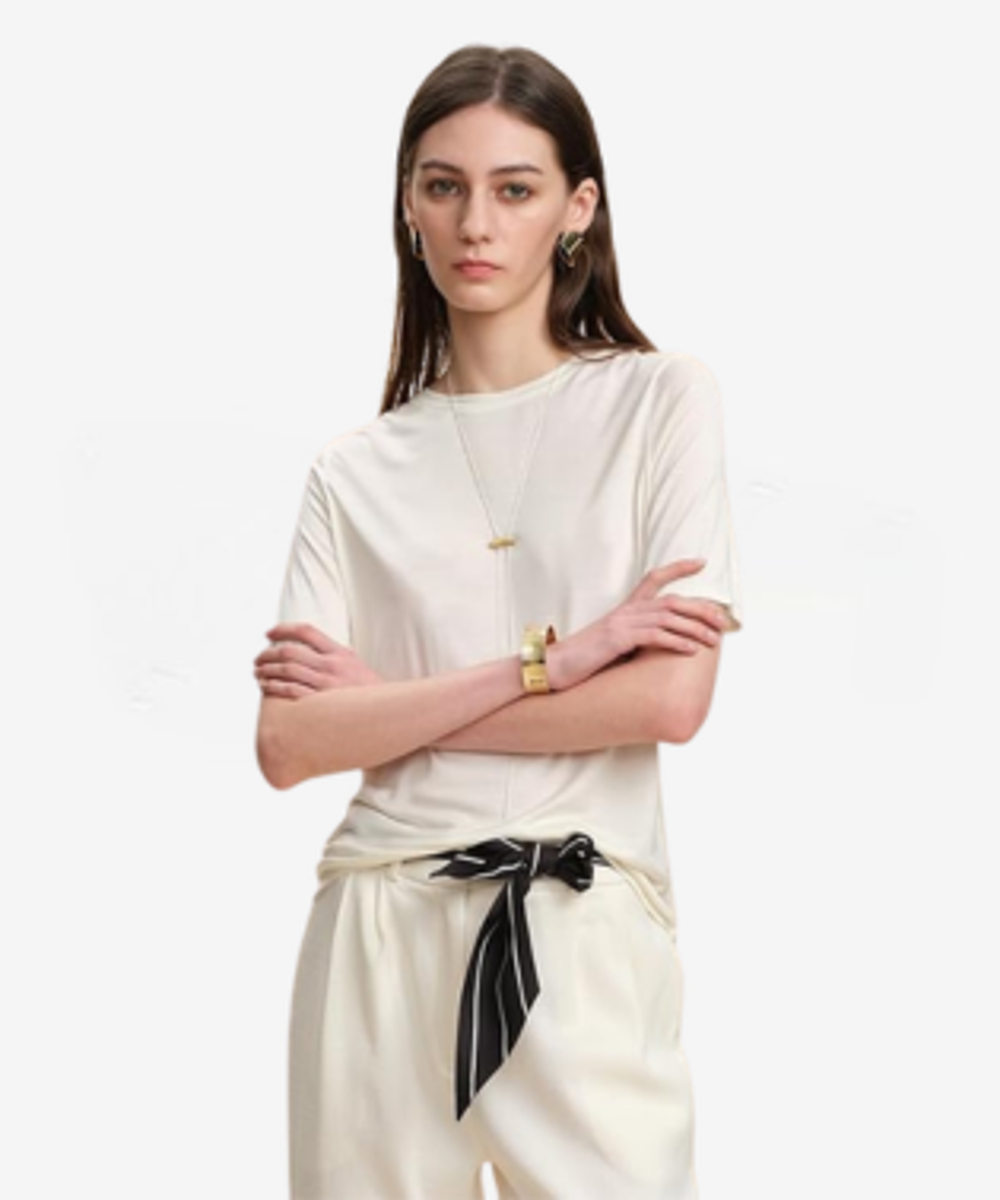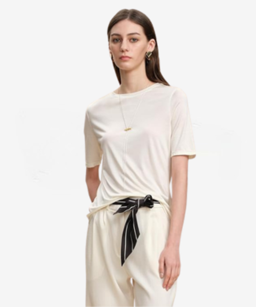 - Soft and Luxury Fabric:This womens basic t-shirt made by 100% exquisite spun silk,silk is lightweight and comfortable, smooth and breathable,skin-friendly and comfy,and the silk-knitted fabric is stretchable and comfy.