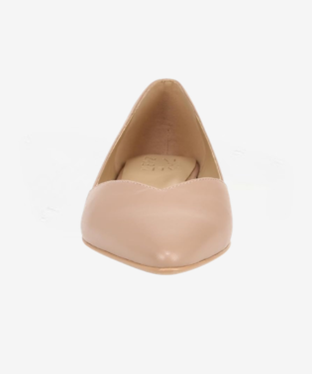 - Well-cushioned womens flat dress shoes with V-shaped vamp and pointed toe