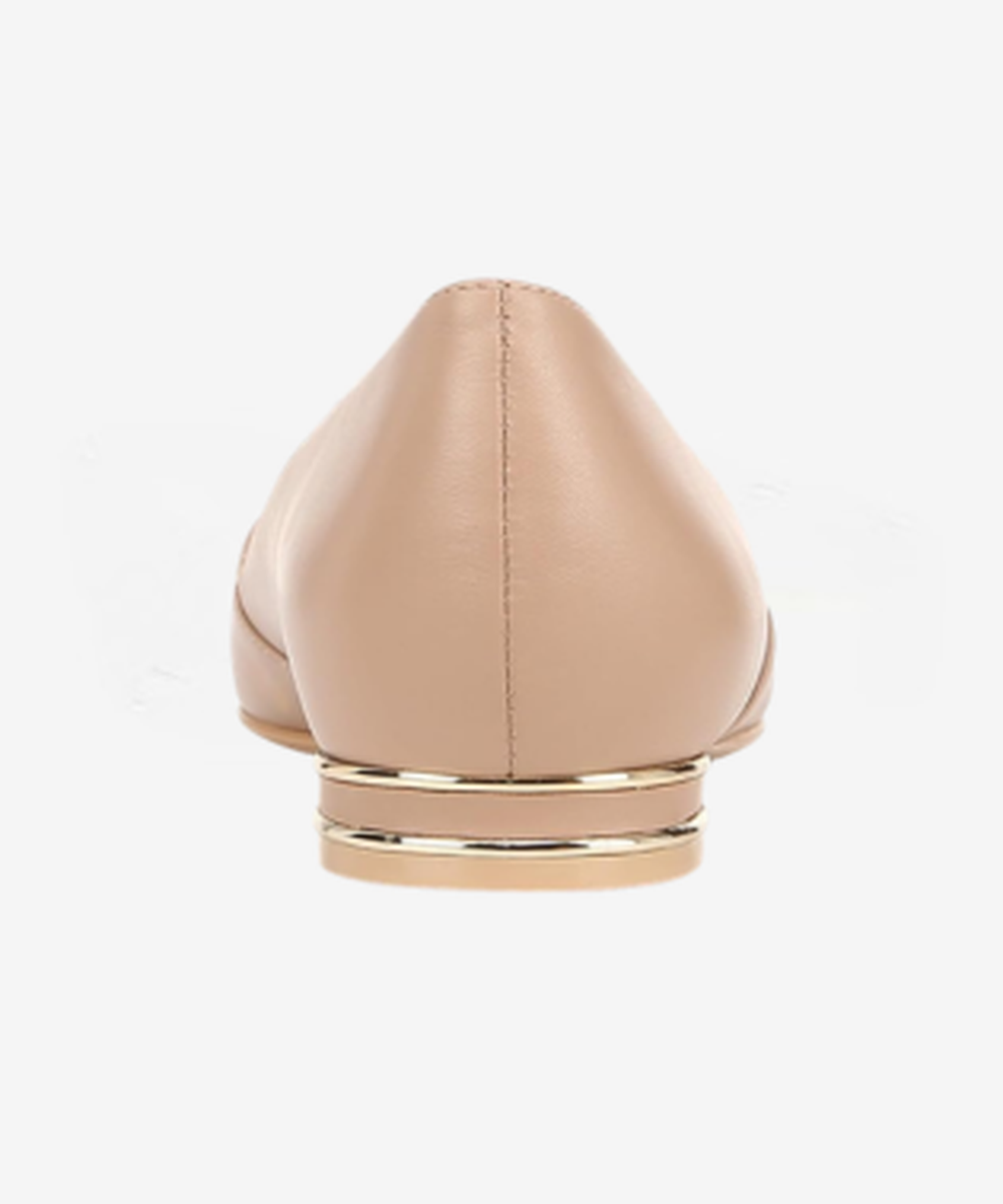 These elegant women’s flat shoes feature a sleek pointed-toe design in a soft beige tone, offering a perfect blend of style and comfort. Crafted with a smooth finish and a low-profile silhouette, they are ideal for everyday wear, office outfits, or casual occasions. The subtle metallic detail on the heel adds a modern touch, making these flats a versatile and chic addition to any wardrobe.