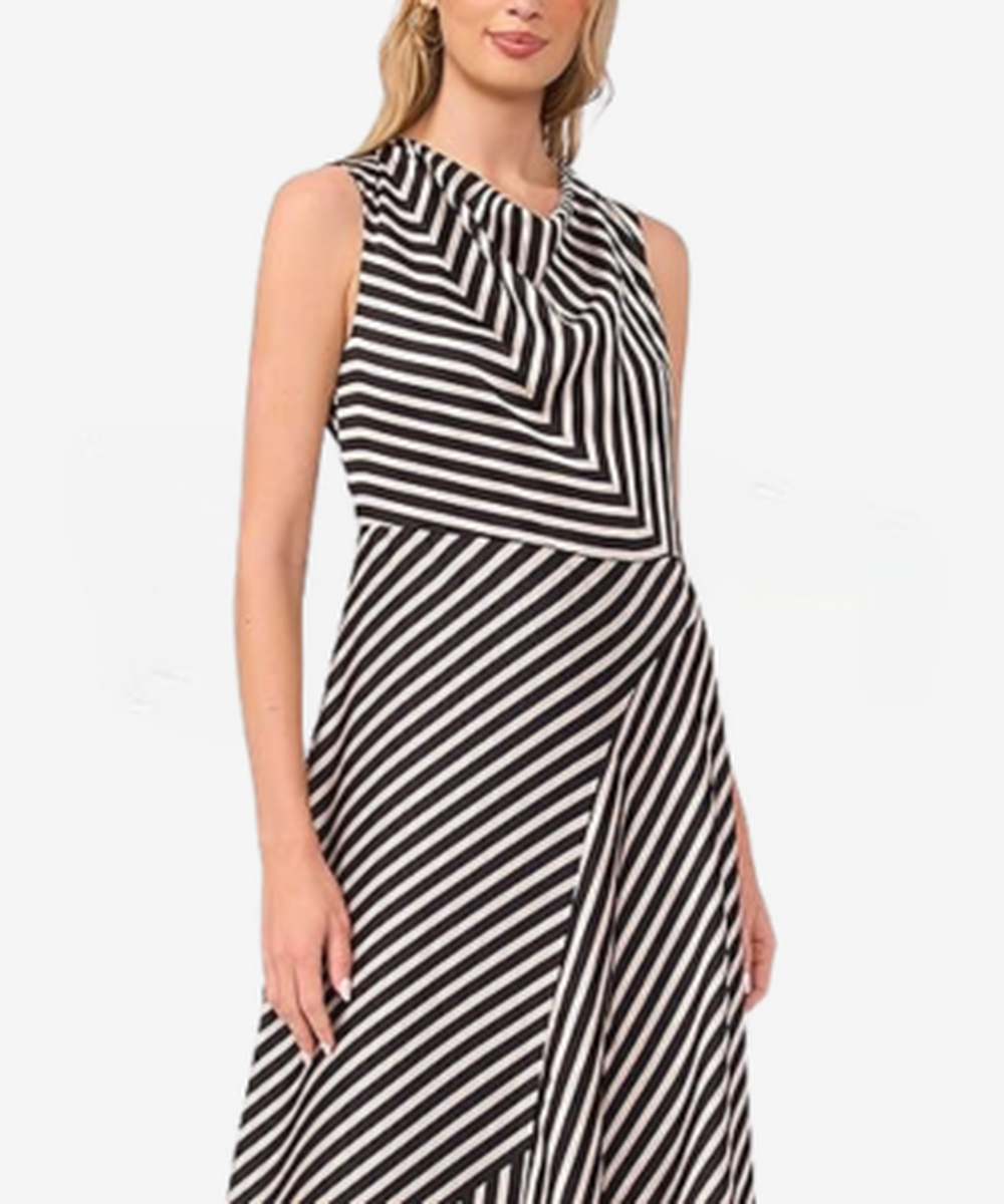 Women’s Striped Cowlneck Sleeveless Midi Dress